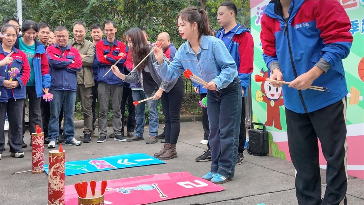 個人項目環節同樣精彩紛呈。“321請回答”猜歌游戲中,每當旋律響起,參賽者們便凝神細聽,快速反應,搶占答題擂臺,現場熱鬧非凡;投壺項目中,大家全神貫注,盡顯專注與沉穩,感受傳統運動的魅力;“公雞下蛋”項目更是引得全場笑聲不斷,成為當天最受歡迎的項目之一。
