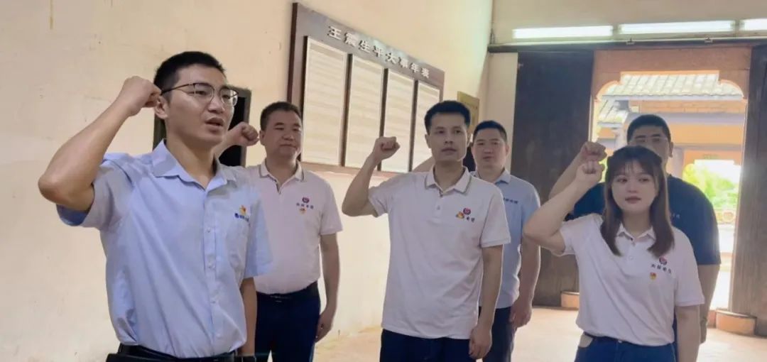 參觀完后,為堅定入黨初心,黨員們面對王震將軍畫像,舉起右拳,再次莊嚴宣誓,重溫入黨誓詞,感受涌動初心。